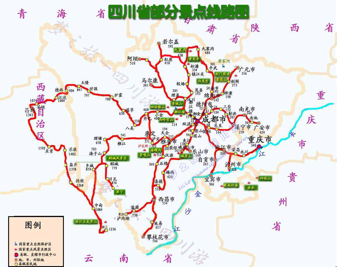 四川省部份景點線路圖