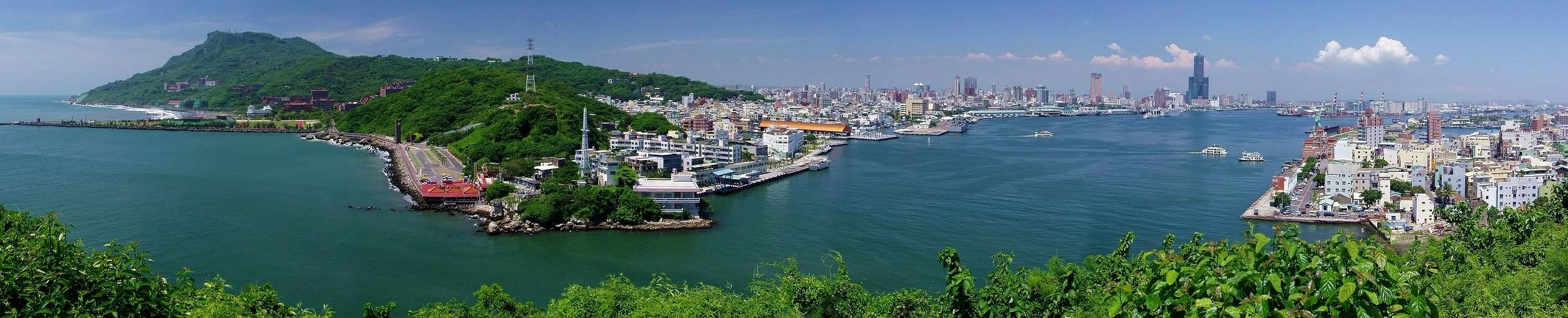 從旗后燈塔瞭望高雄港市全景:圖左為