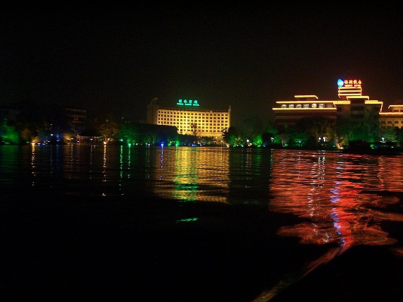 桂林的兩江四湖船遊不容錯過,夜晚五顏六色的河畔燈光、有聲有色的中國式建築、狀觀的湖畔水舞秀、美侖美奐的橋樑造景與刻畫、以及仿造巴拿馬運河的水閘門開關景色都讓人讚嘆不已,許多地方都值得高雄愛河效仿學習。不過有趣的是,兩江四湖絢麗的燈光卻與桂林市區的路燈形成強烈的對比,市區的路燈不是壞的壞、不亮的不亮,就是昏暗不已,讓人一時間摸不著頭緒。