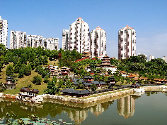 結束了桂林大自然的旅遊景點後,晚上趕搭誤點頻繁且服務不善的國內班機直飛深圳,抵達深圳後航廈內猶如上演逃難記一樣的混亂,大家推來擠去好不熱鬧,場面浩大令人永生難忘。來到深圳當然得簡單介紹一下,深圳目前27歲,是個沒有歷史背景的新興城市,不過由於地處優勢的關係,讓深圳擁進了不少外來觀光客落腳過境。雖然從外表上看來深圳沒什麼特色,但綠意盎然的市容讓人賞心悅目,只是市區的樹葉普遍較為暗淡乾涸,不過看得出深圳市政府在綠化方面下了不少功夫。